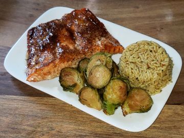 Drizzled with cucumber dill sauce and served with wild rice on the side